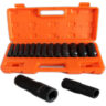 Utilissimo kit di 15 bussole lunghe esagonali per pistola pneumatica, adatte per smontaggio e montaggio componenti auto moto e camper, come pneumatici o parti di motore.