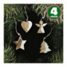 4 Appendini Natale In Legno Ovatta Forma Stella Albero Angelo Cuore 11cm Bianco