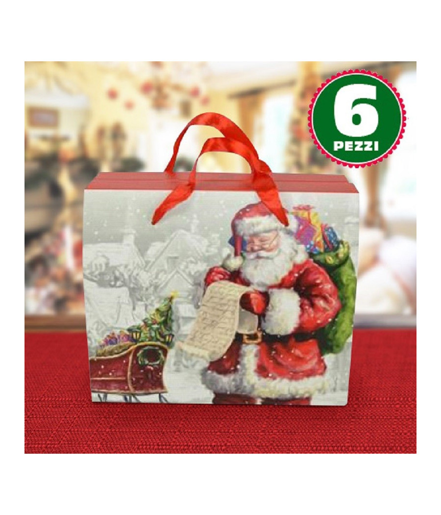 6 Scatole Da Regalo Stampa Babbo Natale Classico Manici Rossi 23 X 12,5 X 27,5cm