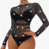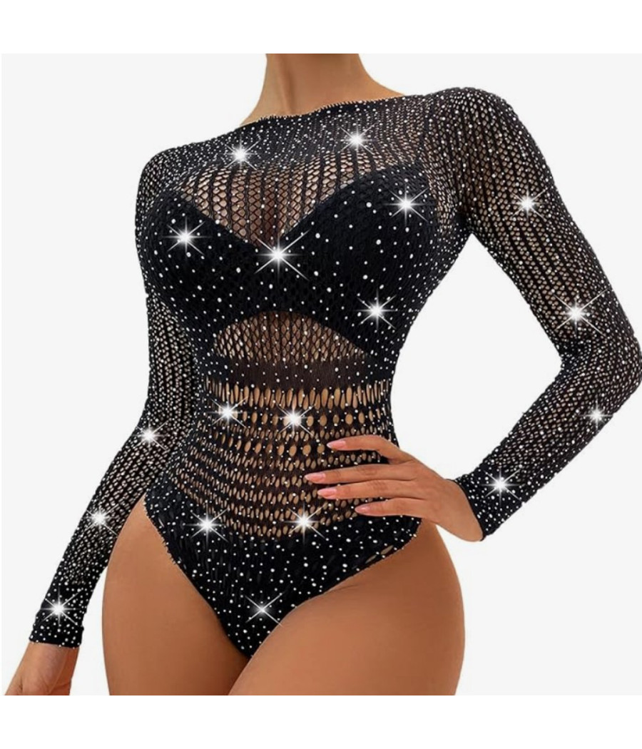 Body Con Strass In Rete Trasparente Sexy Donna Intimo In Pizzo Lingerie Babydoll
