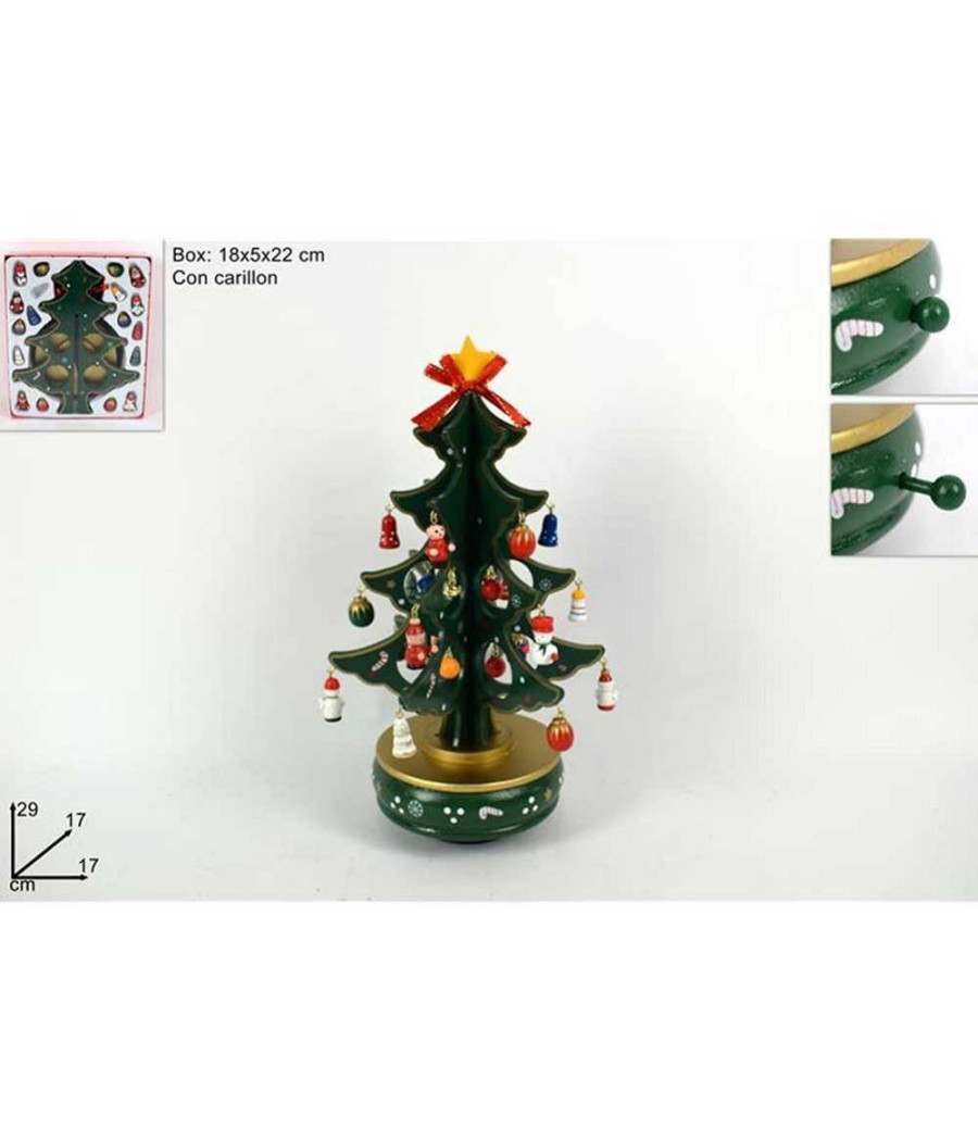 Carillon Natalizio Albero Di Natale Legno Con Addobbi 29cm Decorazioni Natalizie