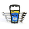 Pratico comodo e utile set composto da ben 6 chiavi combinate chiavi inglesi e chiavi a cricchetto (non reversibile). Il set di chiavi sono realizzate in acciaio cromo vanadio, professionali e resistenti. Il tutto in un astuccio ad aggancio in plastiica rigida per riporle nella vostra officina. Ideali sia per professionisti e sia per amanti del fai da te e da avere nel proprio set di manutenzioni nel vostro garage.