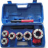 Pratico set per idraulici ed installatori di impianti idraulici e di riscaldamento. Pettini in acciaio super rapido intercambiabili. La filiera è composta da 6 bussole e 1 cricchetto completo dei manici. Prolunga da 47cm