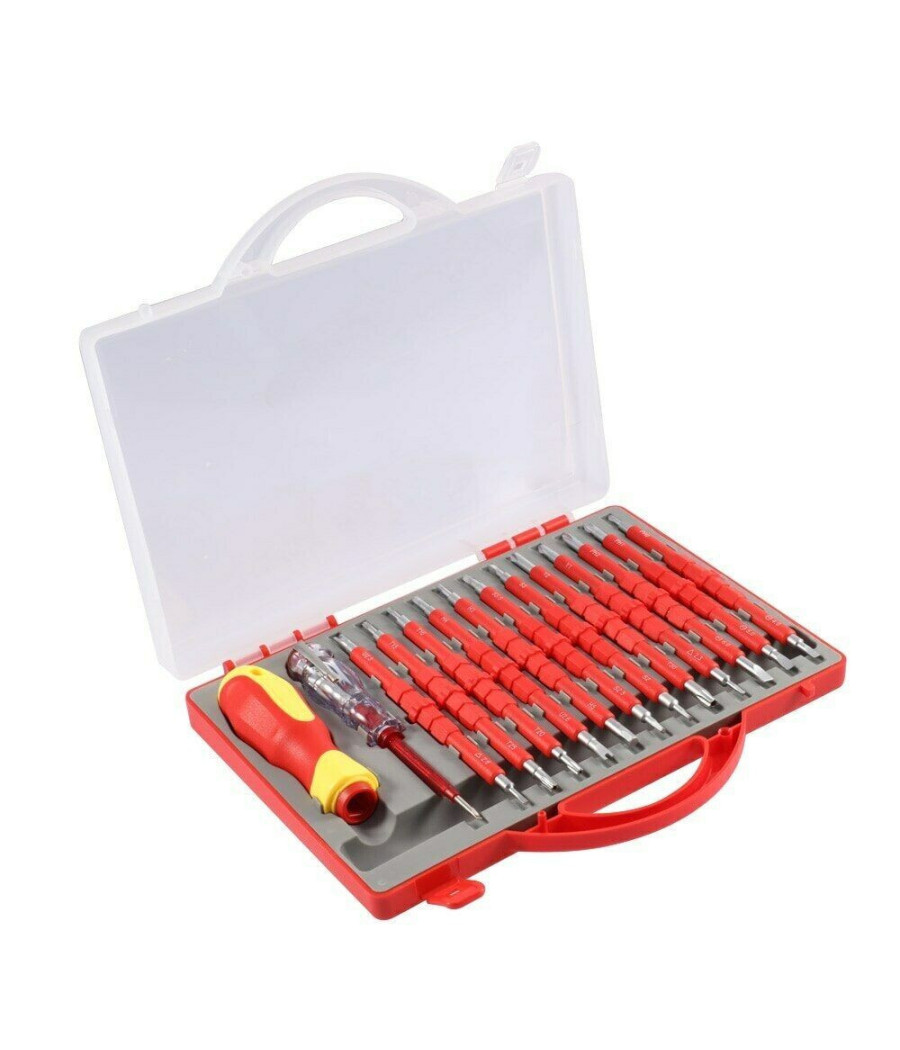 Il set 26pz cacciaviti isolati elettricista giraviti modulari con cercafase A.3017 è una soluzione completa per le esigenze degli elettricisti professionisti e degli appassionati del fai-da-te. Questo set comprende una vasta gamma di utensili essenziali per affrontare una varietà di compiti elettrici in modo efficace e sicuro.