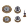 Kit 5 spazzole per trapano. Codolo ø 6 mm. Filo in acciaio ottonato ondulato. Circolare ø 50 – 75 mm – Tazza ø 50 – 70 mm – Pennello ø 16 mm.