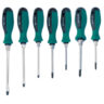 set di 7 cacciaviti sia a stella che a taglio con manico ergonommico, confortevole e comodo. Ideale per professionisti come meccanici – elettrauti – gommisti o anche per amanti del fai da te. 7 cacciaviti muniti di testa esagonale sul retro. Punte magnetiche, finiture satinate resistenti ad acidi ed olio, impugnature in polipropilene ergonomiche.