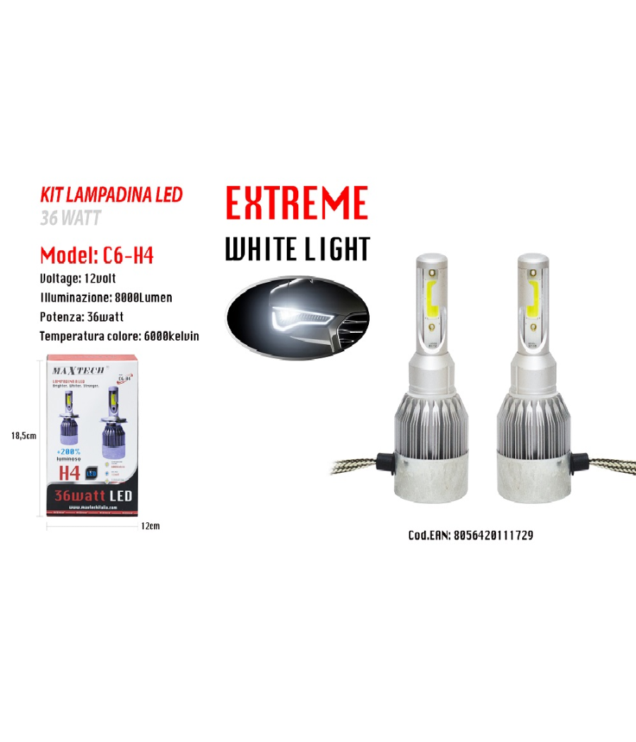Led Auto E Moto Lampade Fari Maxtech H4 C6 Kit Lampadine 36w Luce Bianca 6000k