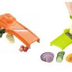 Mandolina affettaverdure manuale regolabile con salvamano 5 tipi di taglio differente, non c’è bisogno di cambiare la lama, basta ruotare la manopola per scegliere il taglio desiderato.Misure fette: 3 – 6 – 9 mmMisure taglio a julienne: 3 – 9 mm