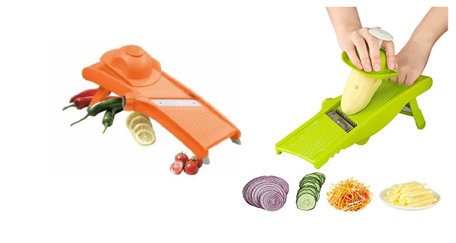 Mandolina affettaverdure manuale regolabile con salvamano 5 tipi di taglio differente, non c’è bisogno di cambiare la lama, basta ruotare la manopola per scegliere il taglio desiderato.Misure fette: 3 – 6 – 9 mmMisure taglio a julienne: 3 – 9 mm