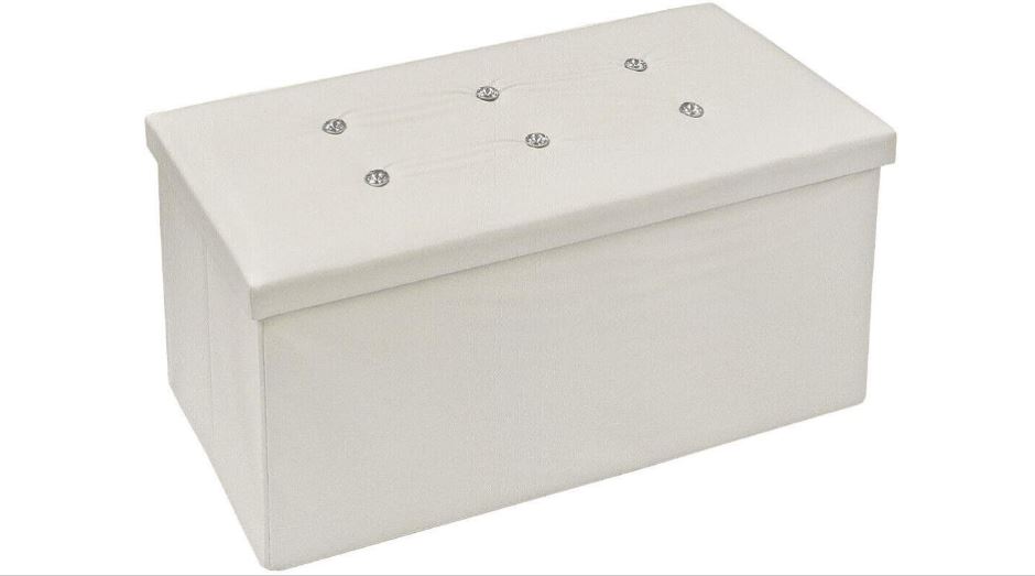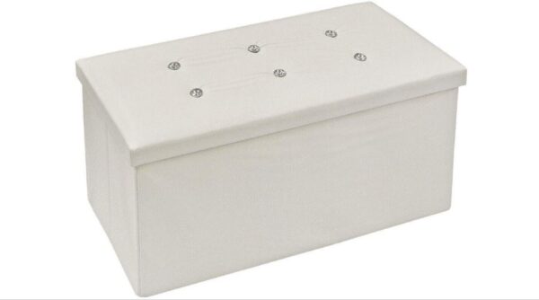 Pouf Sofa Contenitore In Pelle Sintetica 76*38*38cm In Ecopelle. Pouf Sofa Contenitore Elegante , salva spazio ideale per risolvere i piccoli problemi di spazio e arredare piacevolmente l’aria living.Facilissimo da montare , pratico, pieghevole, può essere usato anche come panca grazie alla seduta rinforzata.Confezione: Pouf contenitore salvaspazio: 76x38x38 cmDettagli:La confezione contiene una panca in ecopelle con coperchio imbottito e con la trapuntatura di 8 Swarovski.Struttura pieghevole usato come contenitore per cambi di stagione o come seduta.Utilizzabile anche come poggia piedi.Le misure possono variare di qualche centimetro.Indicazione per il lavaggio: Pulire con un panno umido. E DISPONIBILE NELLA COLORAZIONE BIANCA,LA FOTOCAMERA PUÒ MODIFICARE UN PO’ LA TONALITA’