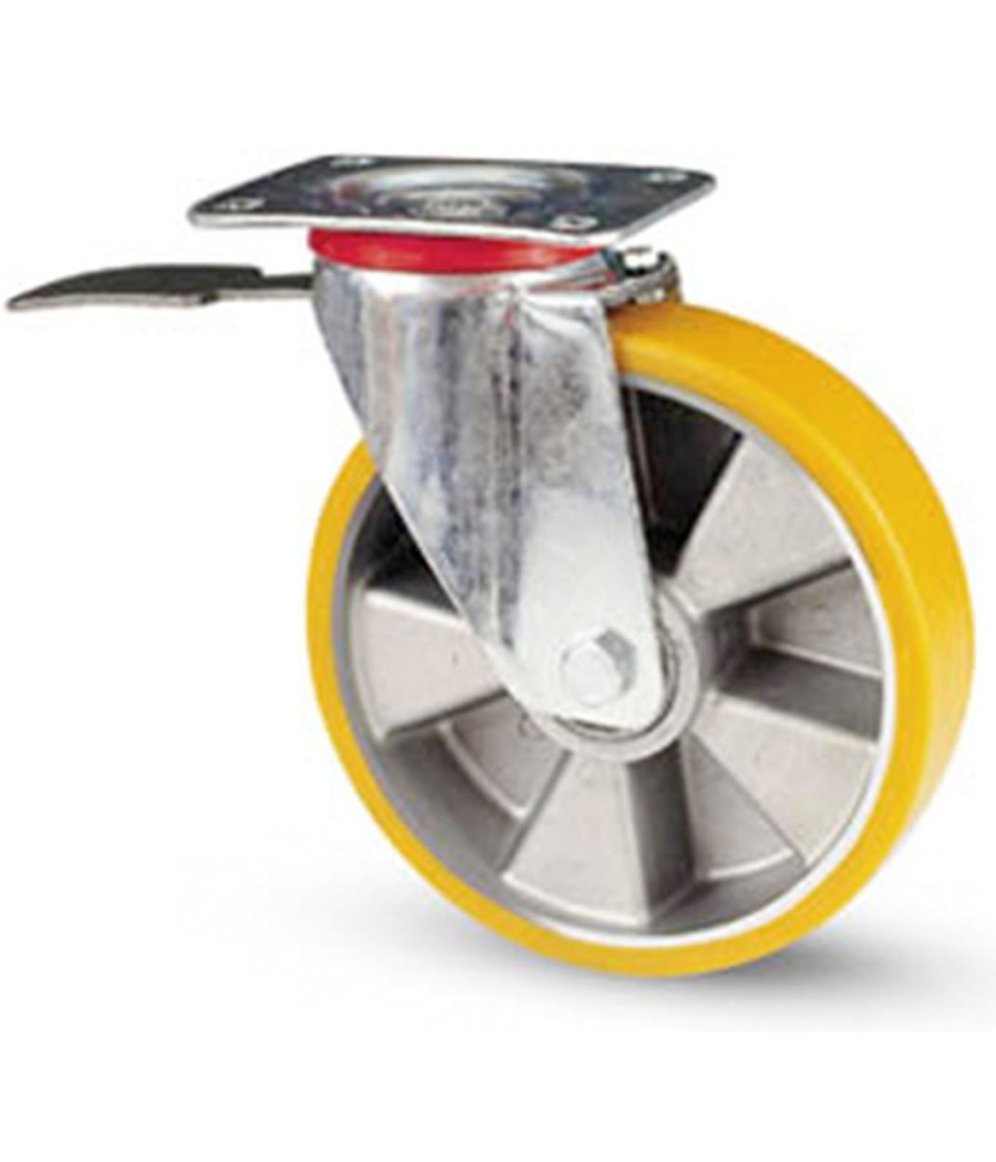 Ruota Girevole con Piastra e Freno Rivestimento in Poliuretano AVOLAN Sh A 91