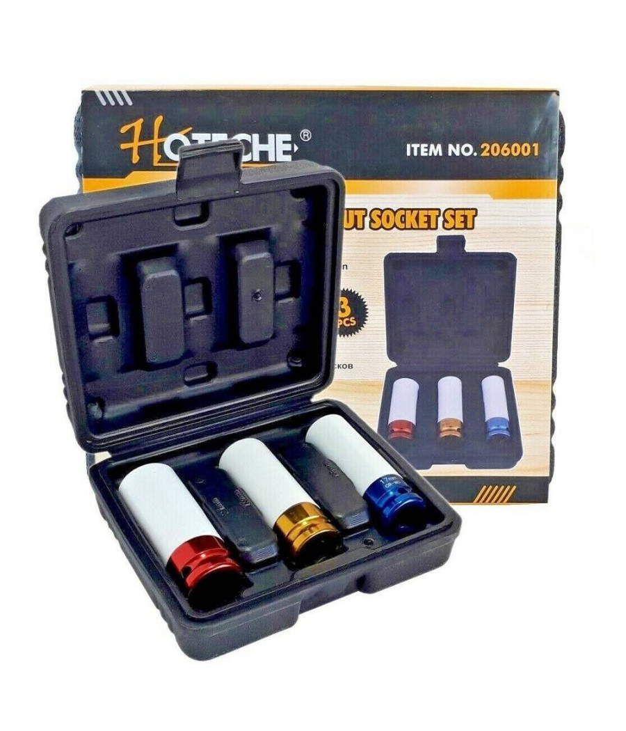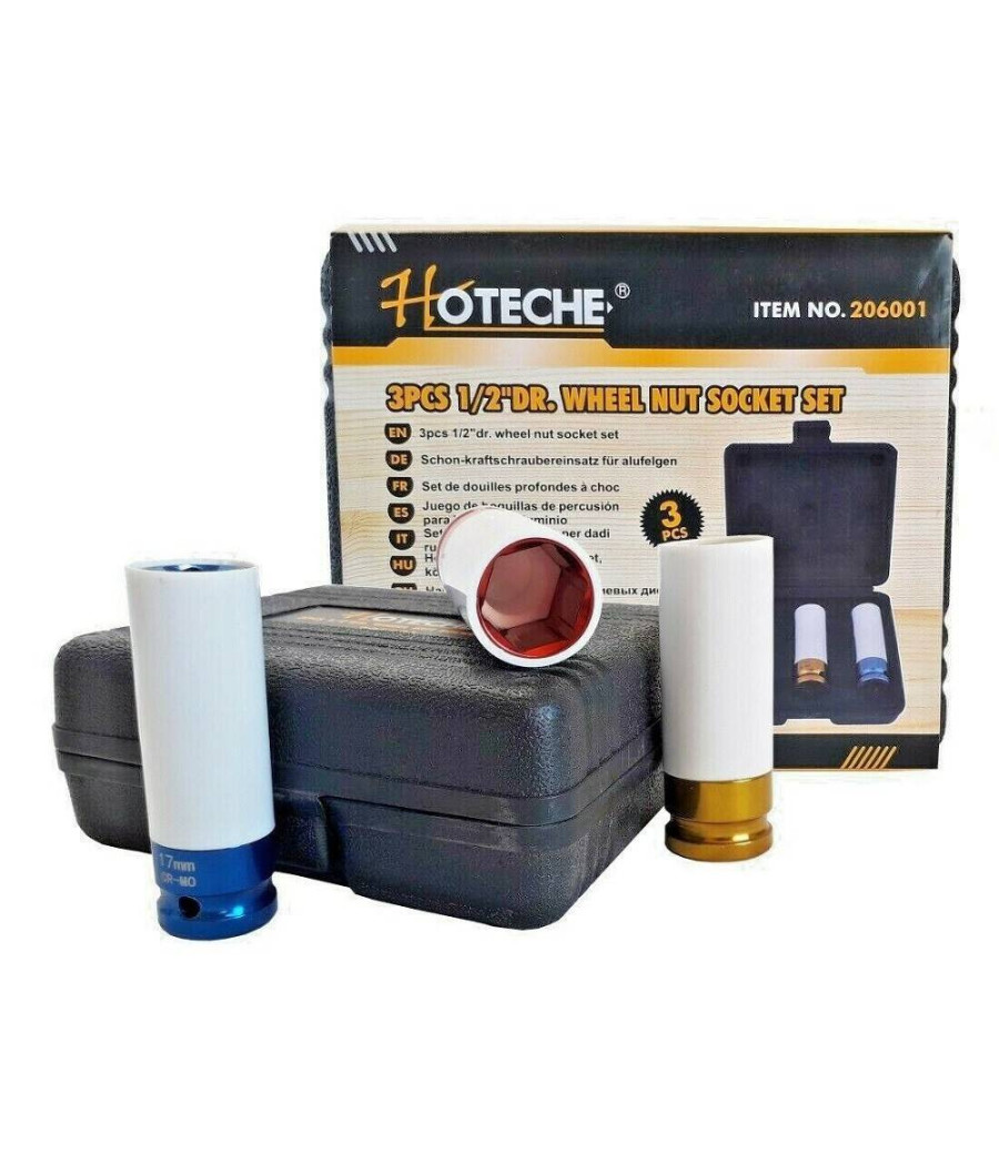 Set 3 Chiavi A Bussole 1/2” Per Cerchi In Lega Rivestimento Teflon 17 19 21mm