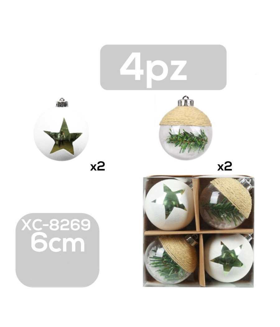 Set 4 Palline Natalizie Decorazioni 6 Cm Addobbi Per Albero Di Natale Xc-8269