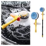 Spazzola Per Lavaggio Pulizia Auto Rotante Con Serbatoio Sapone Attacco Tubo Manico Lungo