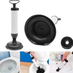 Adatto a tutti i produttori di servizi igieniciPrincipio di funzionamento: lo stantuffo aspira l’aria all’interno dei tubi intasati per produrre una forte differenza di pressione dell’aria; il getto d’acqua potente colpirà ciò che blocca lo scarico che verrà così liberato. Il tubo a tenuta d’aria dispone di una maniglia che aumenta la contropressione nel momento in cui viene tirata, fornendo una pressione di aspirazione maggiore rispetto a un normale sturalavandini. Design speciale: il design compatto allenta i detriti pressati in tubature, servizi igienici, vasche da bagno, docce, lavandini e molto altro ancora; uno stantuffo per WC con supporto.Ottima qualità: utilizziamo gomma naturale, plastica ABS e acciaio inossidabile per i nostri stantuffi.1 stantuffo per WC, lavandini, docce, vasche da bagno e scarichi.