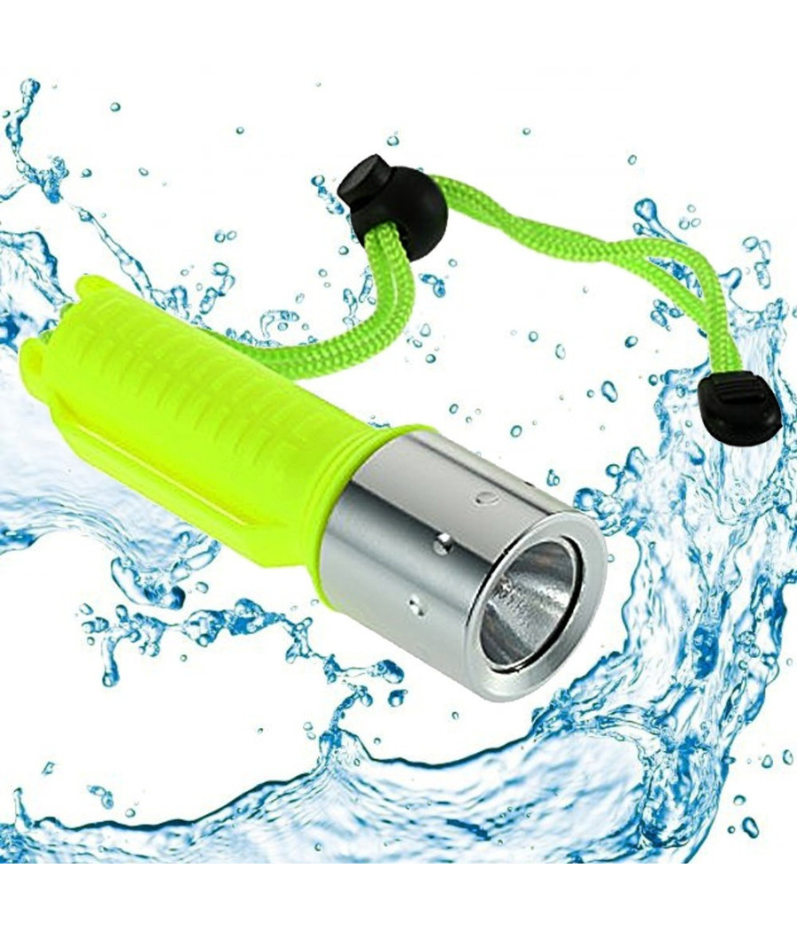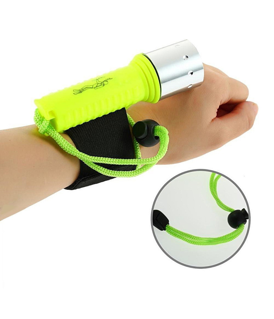 ferma la torcia su polso. Dotata di tecnologia led da 260 lumen. Torcia led subacquea realizzata in materiale di alluminio e ideale per la pesca subaquea o per immersioni. Dotata di fascia eleastica a strappo per polso per poterla fissare la polso durante le immersioni. Presenta anche un laccetto da trasporto per metterla al collo prima di immergervi. 3 tipi di illuminazioni, luce bassa, luce intensa e sos. Potenza lumen variabile a seconda del tipo delle illuminazioni, a luce bassa 200Lumen a luce alta 800 Lumen. Resistente agli Urti. Si alimenta con 1 X 18650 3.7V Battery (Non inclusa nella confezione) o anche con 3 pile ministilo(non incluse nella confezione)