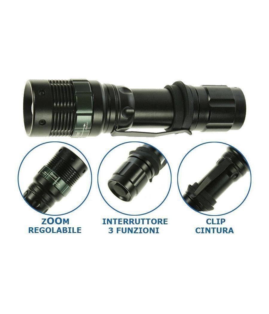 Torcia Tattica Militare Cree Led Mod Police 5000 Lumen Nero Con Attacco Cintura
